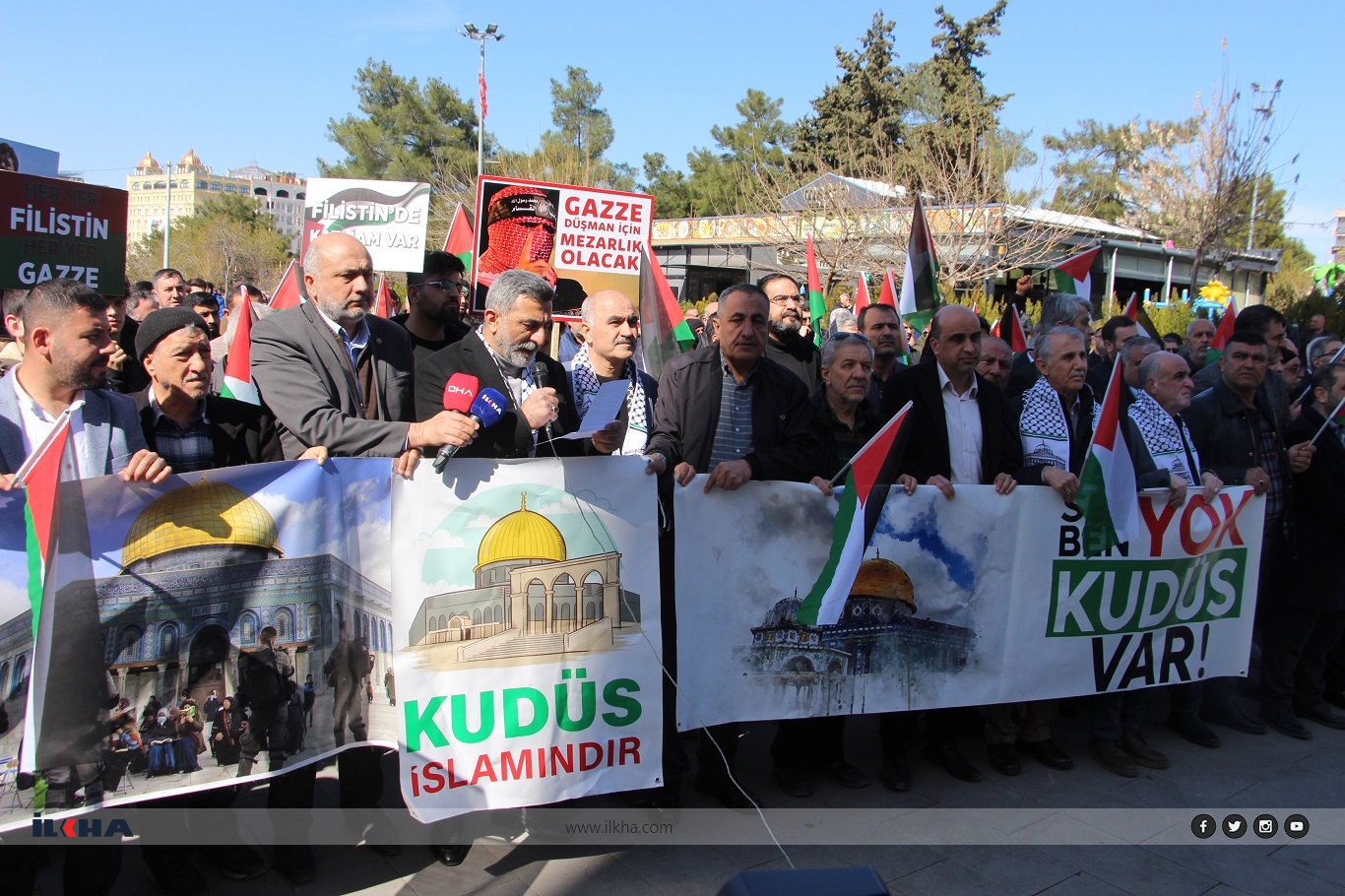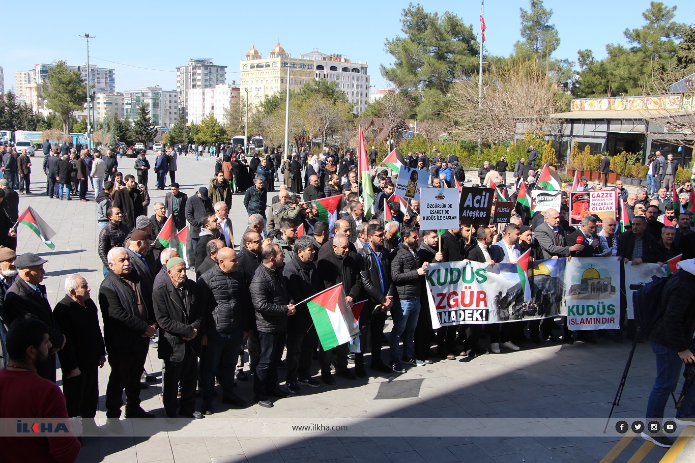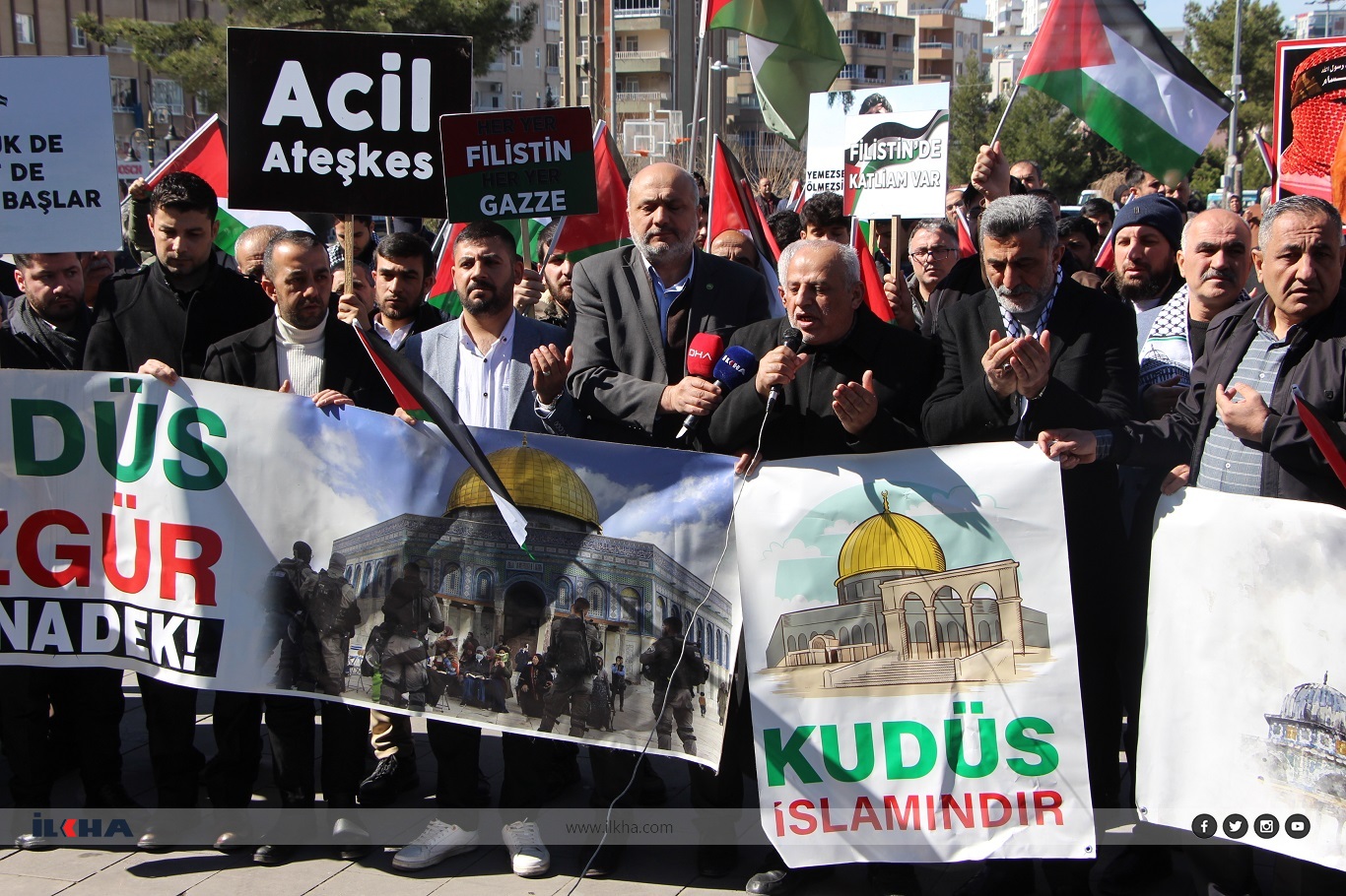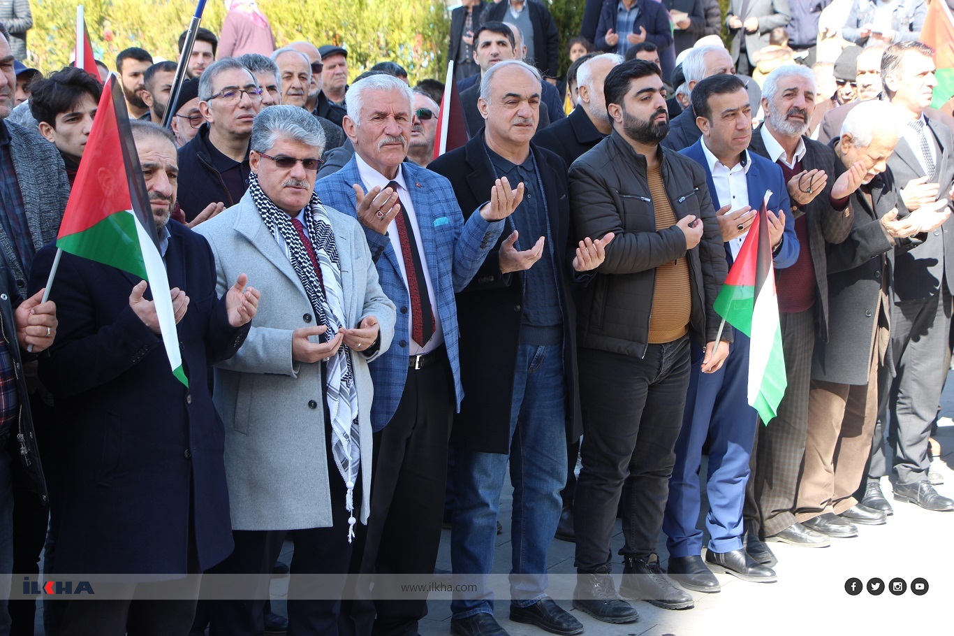 Mardin merkez Artuklu ilçesi, Şakir Nuhoğlu Camii’nde kılınan Cuma namazı çıkışı Kudüs Platformu tarafından basın açıklaması yapıldı. Açıklamanın ardından Gazze’deki mücahitlere ve direnen halkın zafere ulaşması için dualar edildi.