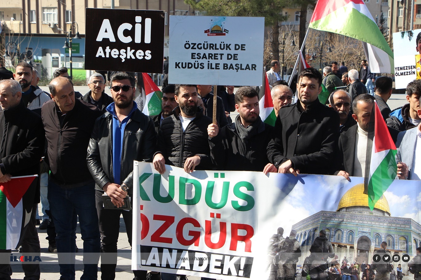 “Tam dört ay, üç hafta oldu; siyonist işgalci israil, her gün kadın, çocuk demeden masum ve sivil insanları katletmeye devam ediyor. Bu süre içinde 80 bin ton bombayı Gazze’nin evlerine, insanlarına, hastanelerine ve pazar yerlerine bırakarak 30 bin masum canı katlettiler. Ama dünya sadece seyrediyor. Katil siyonist İsrail, ülkelerin ve küresel güçlerin suskunluğuyla daha çok vahşileşiyor ve daha cüretkar oluyor. Mardin’den bütün dünyaya, bütün halklara ve bütün müslümanlara sesleniyoruz; Gazze halkına soykırım uygulanıyor. İşgalci siyonist İsrailin saldırılarında Gazze’de hayvanlar öldürülüyor, ağaçlar ve bitkiler imha ediliyor, su kaynakları kurutuluyor, atmosfer ve toprak zehirlenerek büyük bir doğa felaketine yol açıyor. Yemek kuyruğunda bekleşen yüzlerce masum kadın ve çocuk uçaktan atılan bombalarla topluca katlediliyor. Bizler sustukça israil daha da vahşileşiyor.”