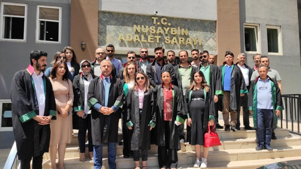 Mardin Baro Başkanı Av. İsmail Elik, Nusaybin’de bir dosyadan dolayı iki avukatın tehdit edildiğini açıklarak olaya tepki gösterdi.Mardin Baro Başkanı, Av. Elik, Mardin Barosuna bağlı Avukatlar ile Nusaybin’de görev yapan Avukatlar, Nusaybin Adliyesi önünde basın açıkalaması yaptılar.