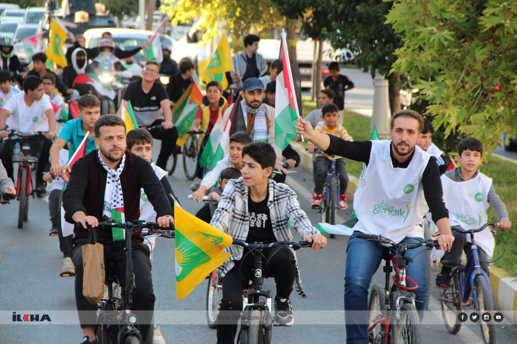 “Rotamız Gazze” parolasıyla, Gençlik Haftası etkinlikleri kapsamında Hür Gençlik Midyat olarak Gazze’deki siyonist işgalci terör şebekesinin yaptığı zulmü tel’in için Cumhuriyet Bulvarında 5 kilometrelik yürüyüş gerçekleştiren onlarca bisikletli ve motosikletli genç, sloganlarla HAMAS’a ve Gazze halkına desteklerini haykırdı.