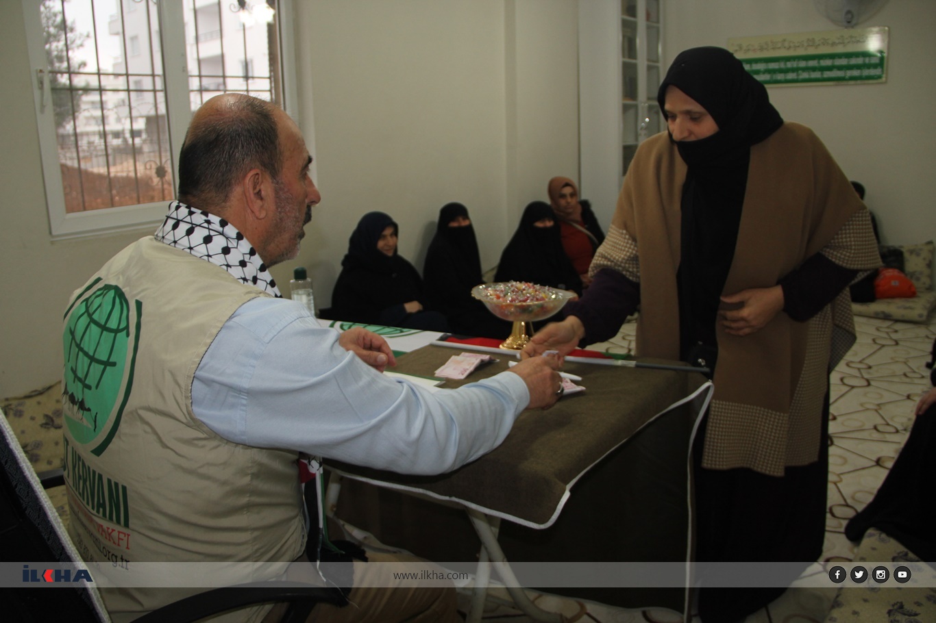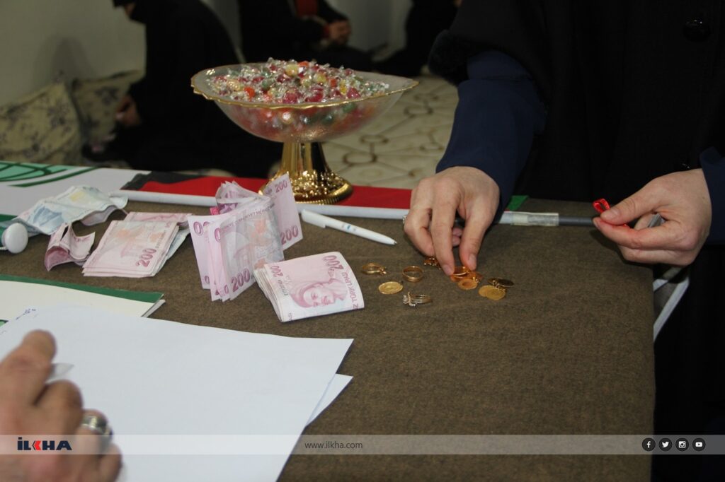 Umut Kervanı Midyat Temsilciliğine gelen kadınlar, bazı ziynet eşyalarını ve nakit paraları HÜDA PAR Midyat Kadın Kolları Başkanlığı öncülüğünde yetkililere teslim etti.