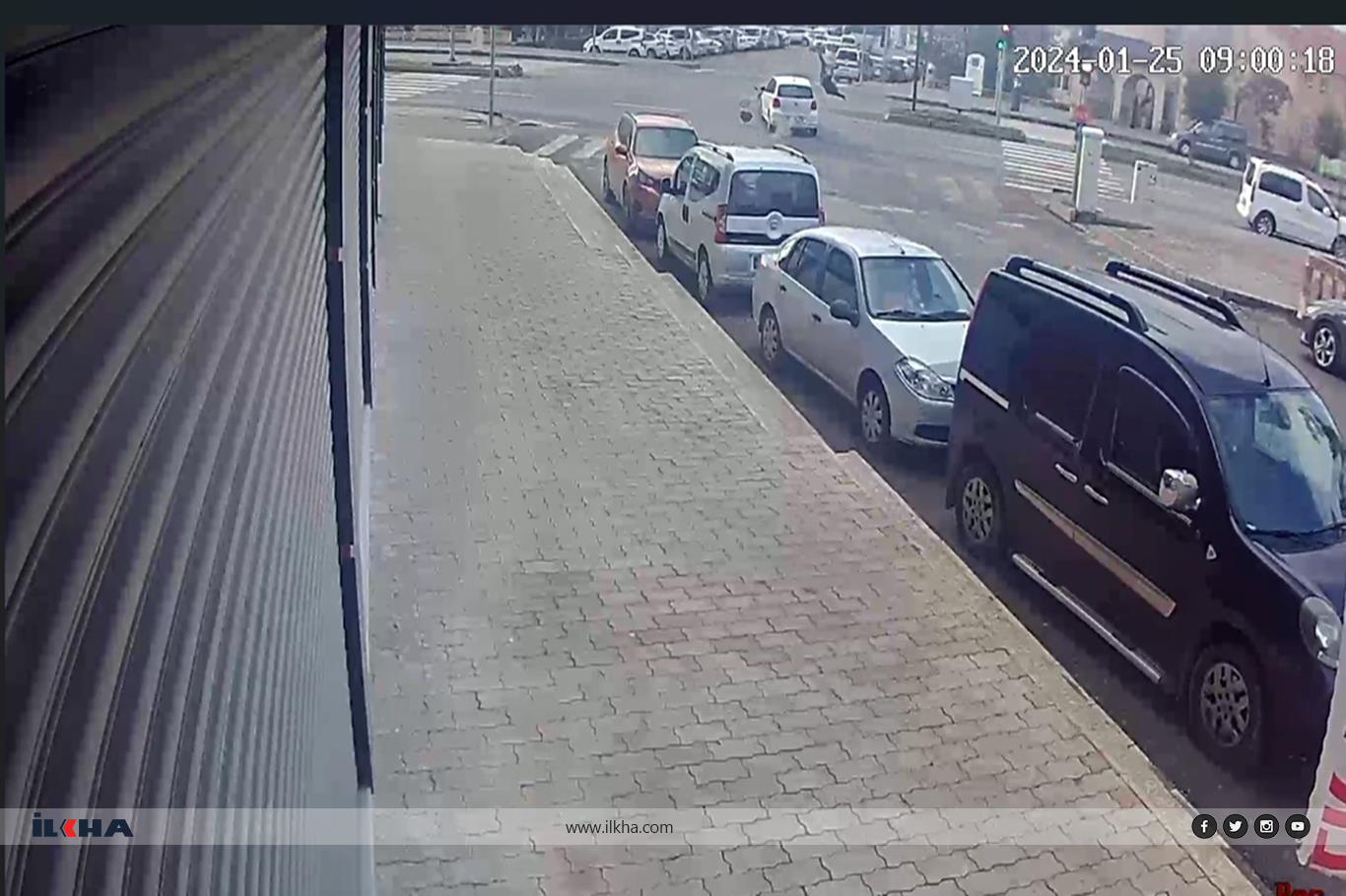 Mardin’in Midyat ilçesinde meydana gelen kazada, otomobilin çarptığı motosiklet sürücüsü yaralandı. O anlar kameralara da yansıdı.
