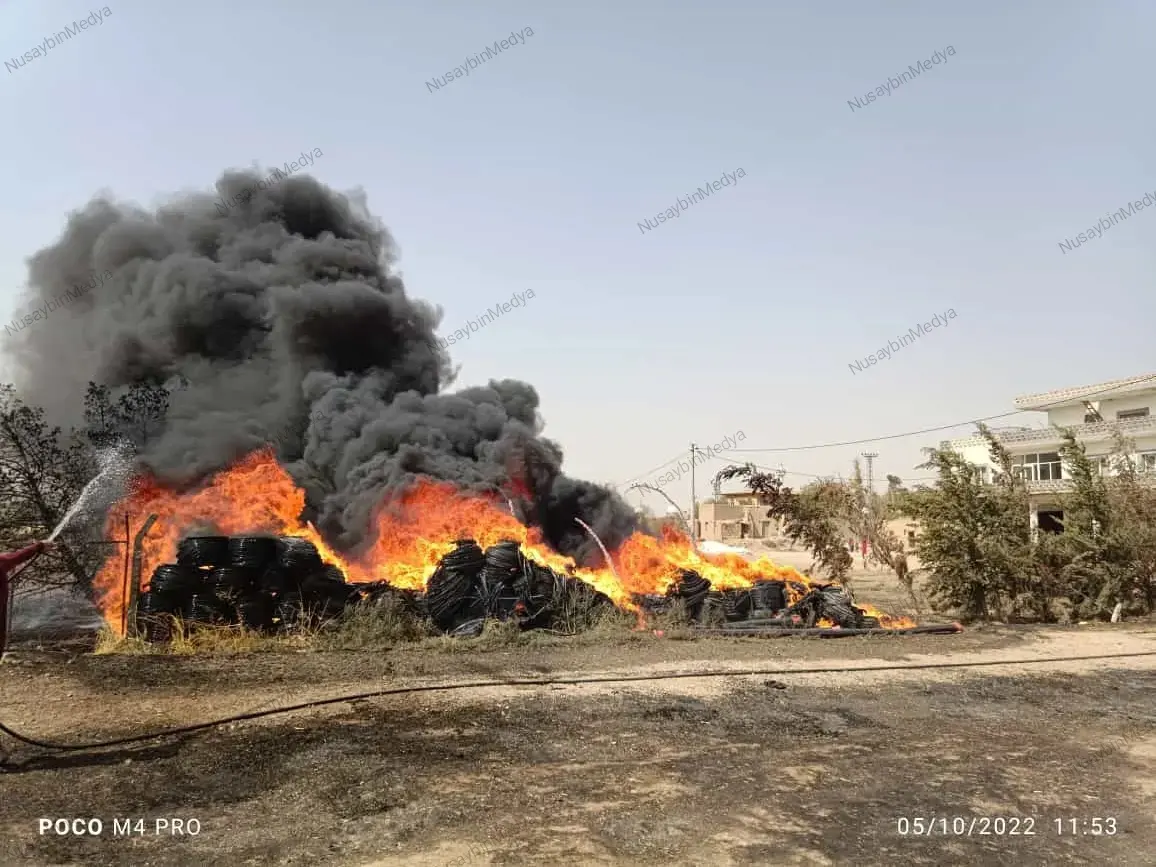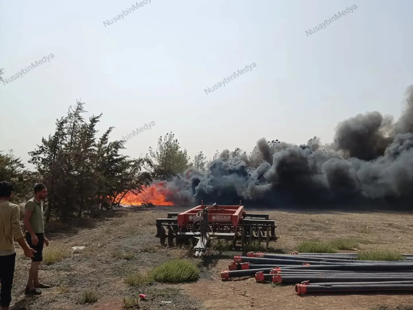 Nusaybin ile Artuklu arasındaki Tilkitepe Mahallesinde bulunan tarladaki damlama sistemi için kullanılacak boruları alev alarak yandı.