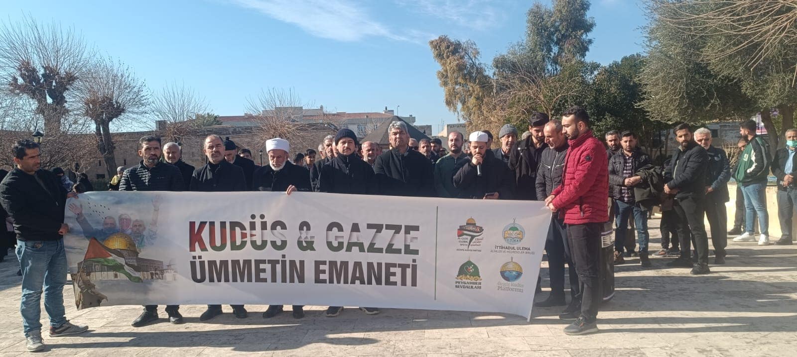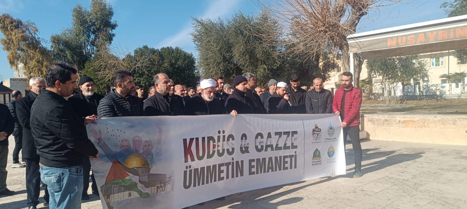 13-19 Ocak tarihleri arasında Dünya Müslüman Âlimler Birliği ile Filistin Âlimler Birliği tarafından ilan edilen “Dünya Kudüs Haftası” kapsamında Mardin’in Nusaybin ilçesinde basın açıklaması yapıldı.