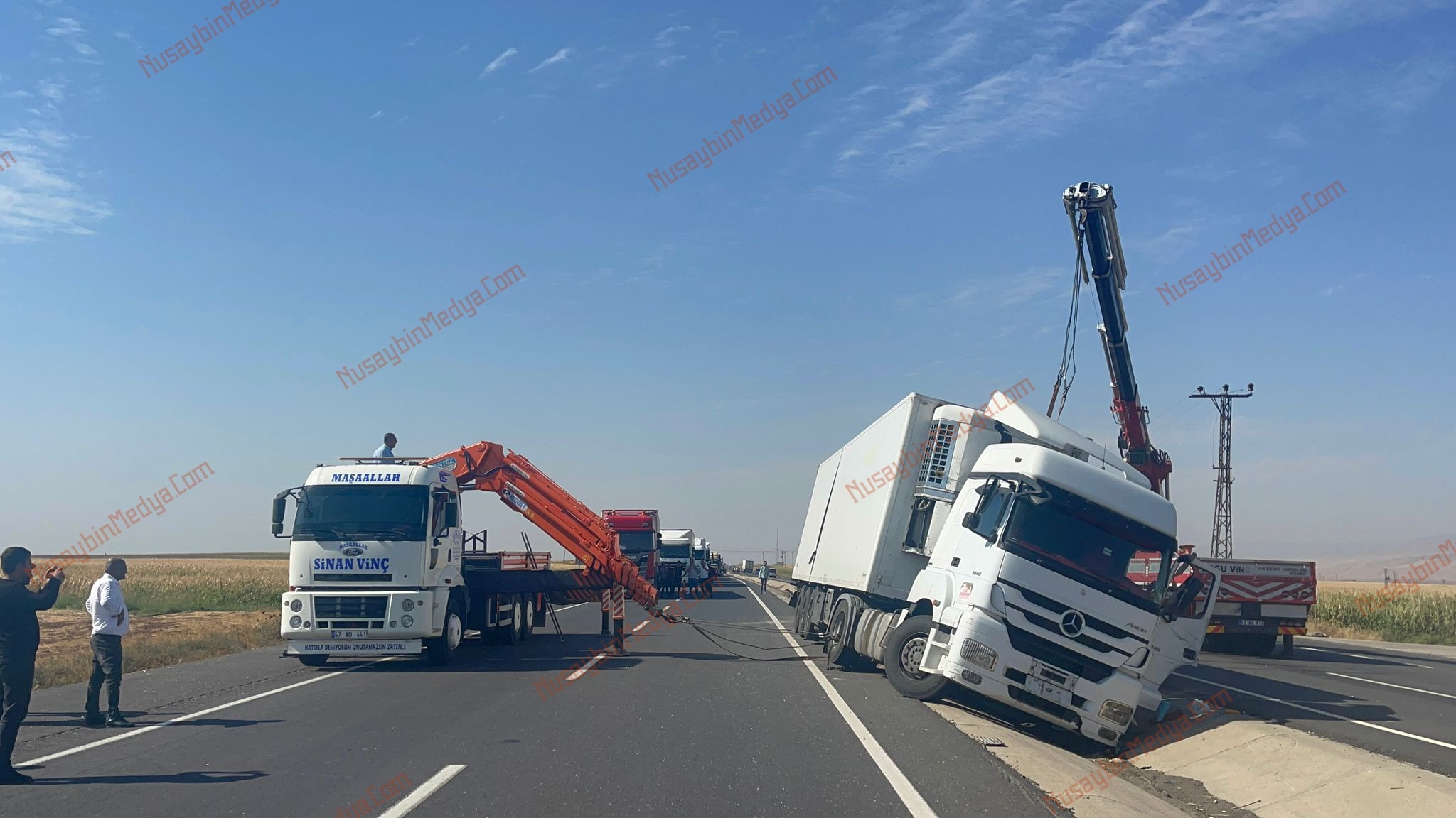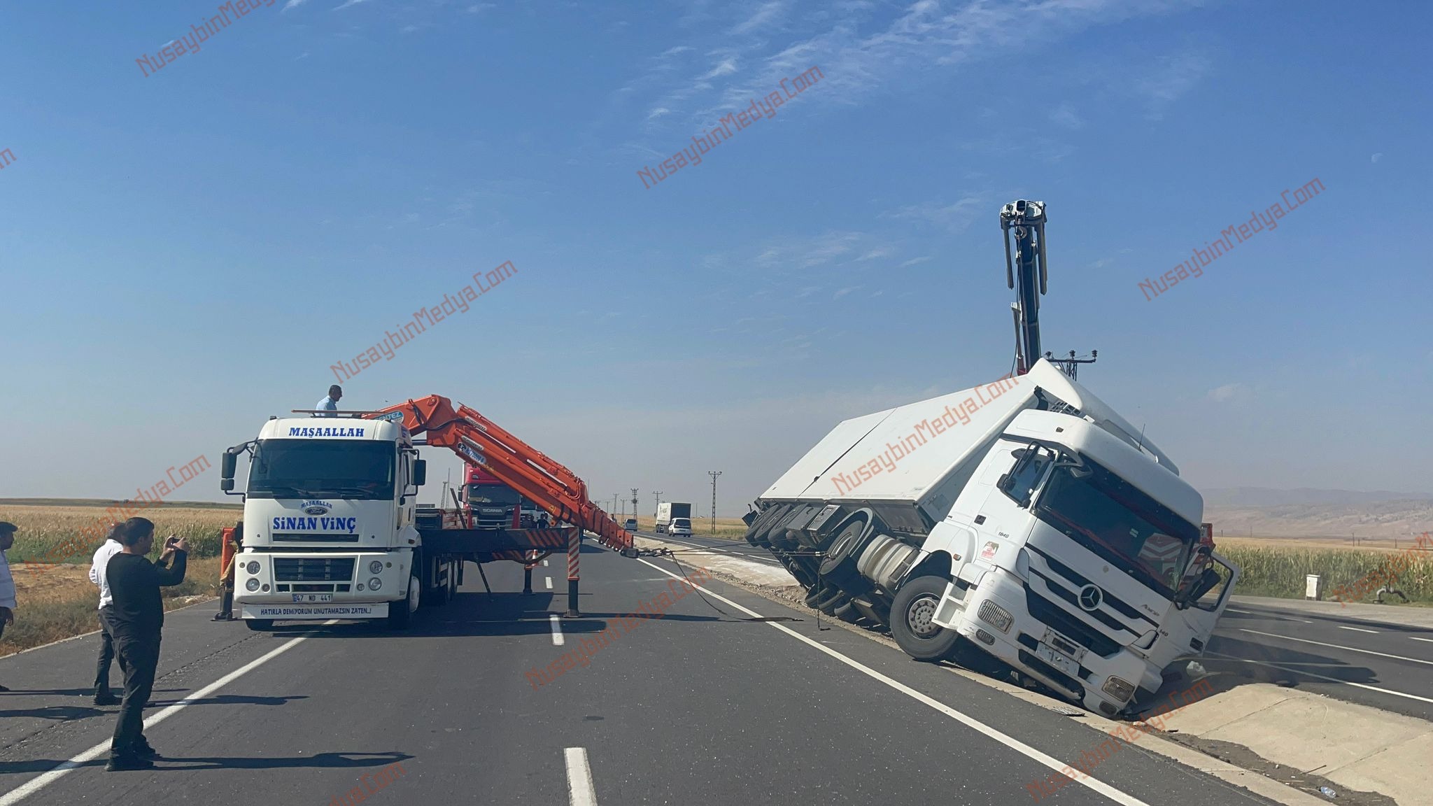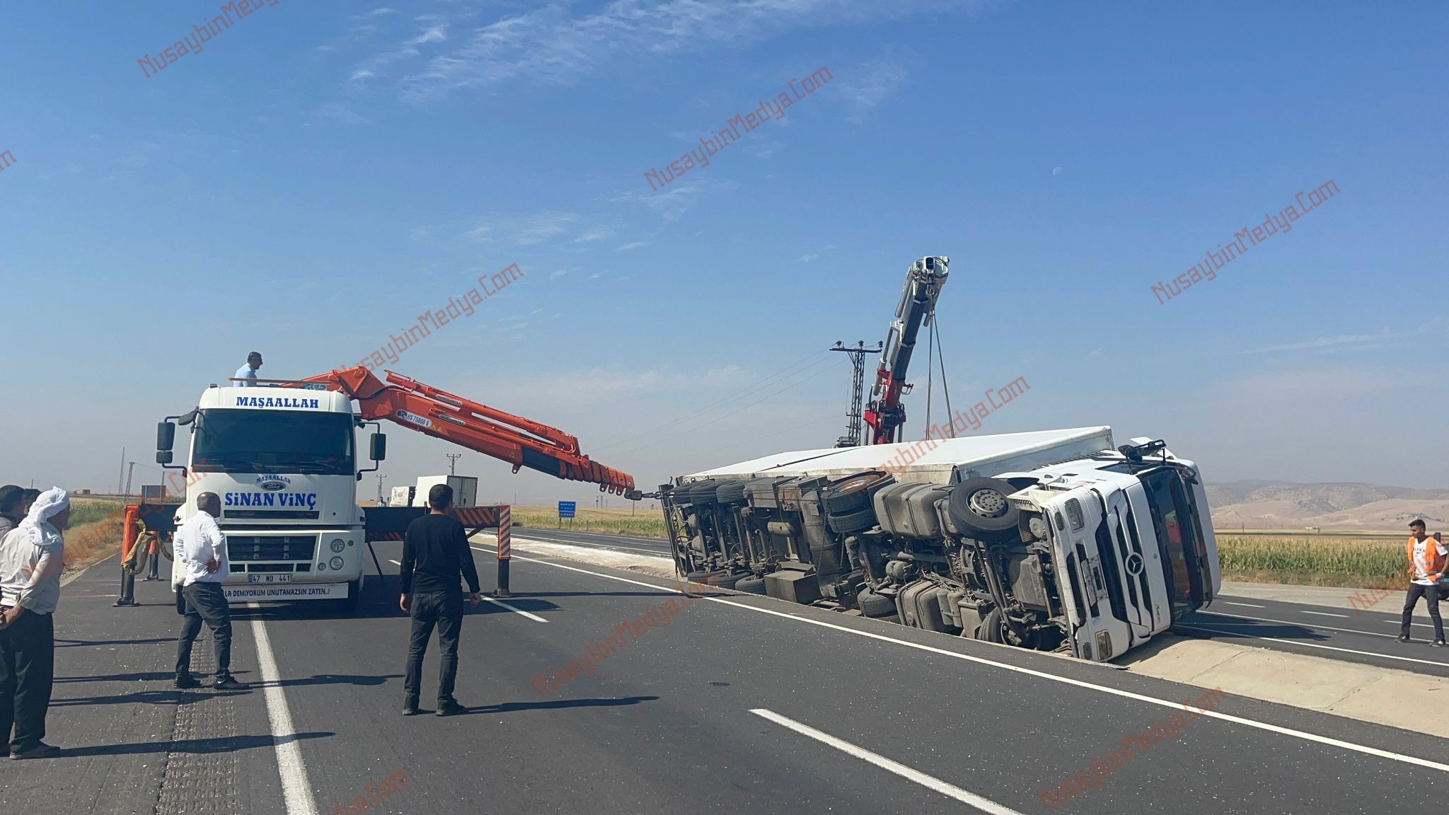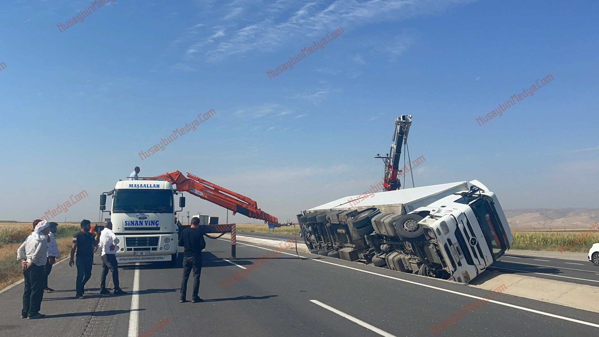 Nusaybin’e bağlı Turgutlu Mahallesi mevkiinde kaza yapan tır yan yattı, 1 kişi yaralandı.