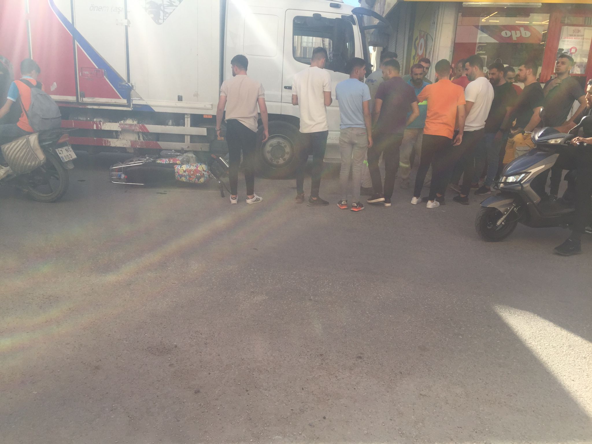 Kullanıcıları ve plakaları öğrenilmeyen kamyon ile motosiklettin çarpışması sonucu meydana gelen trafik kazasında motosiklet sürücüsü yaralandı.