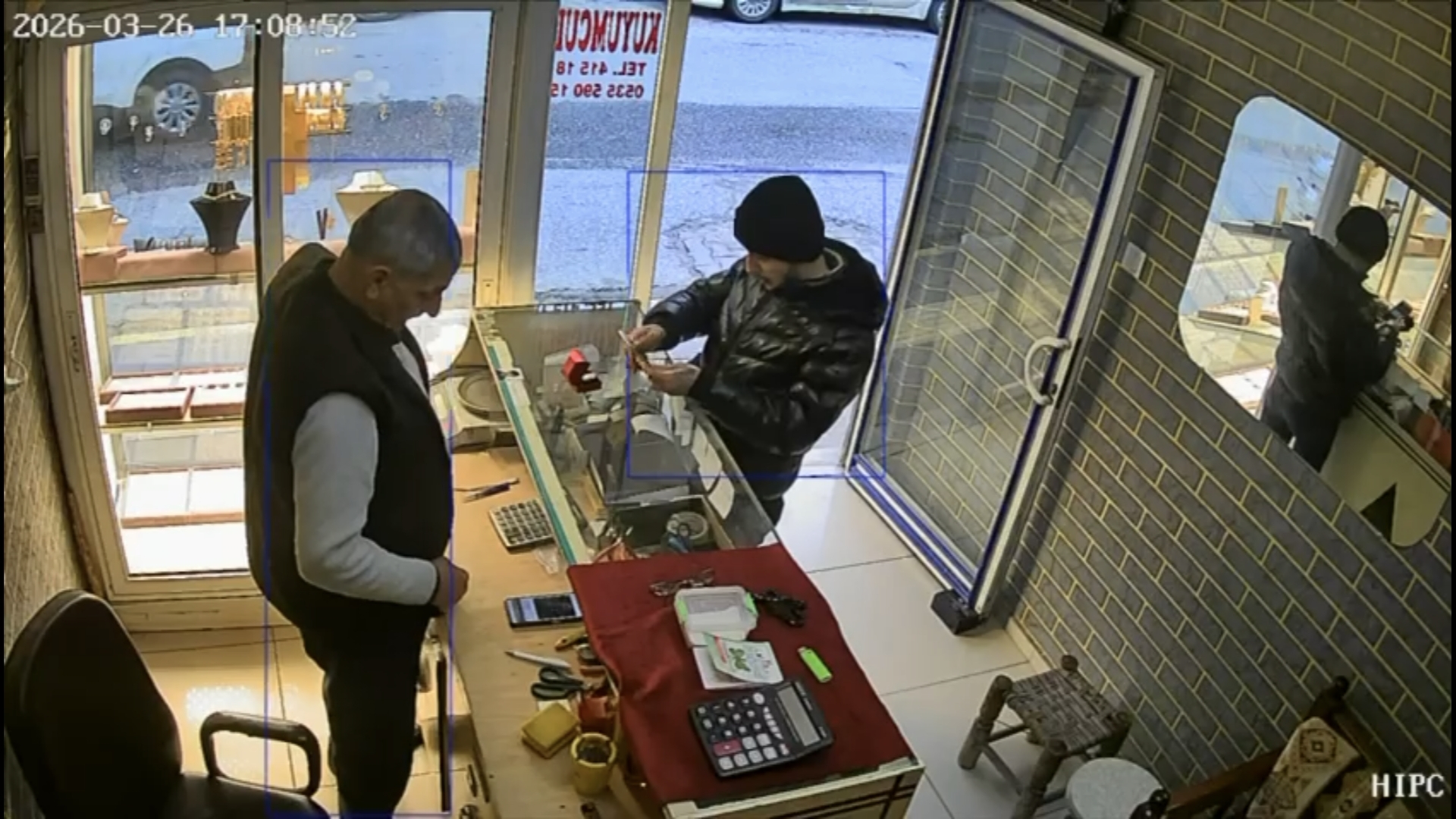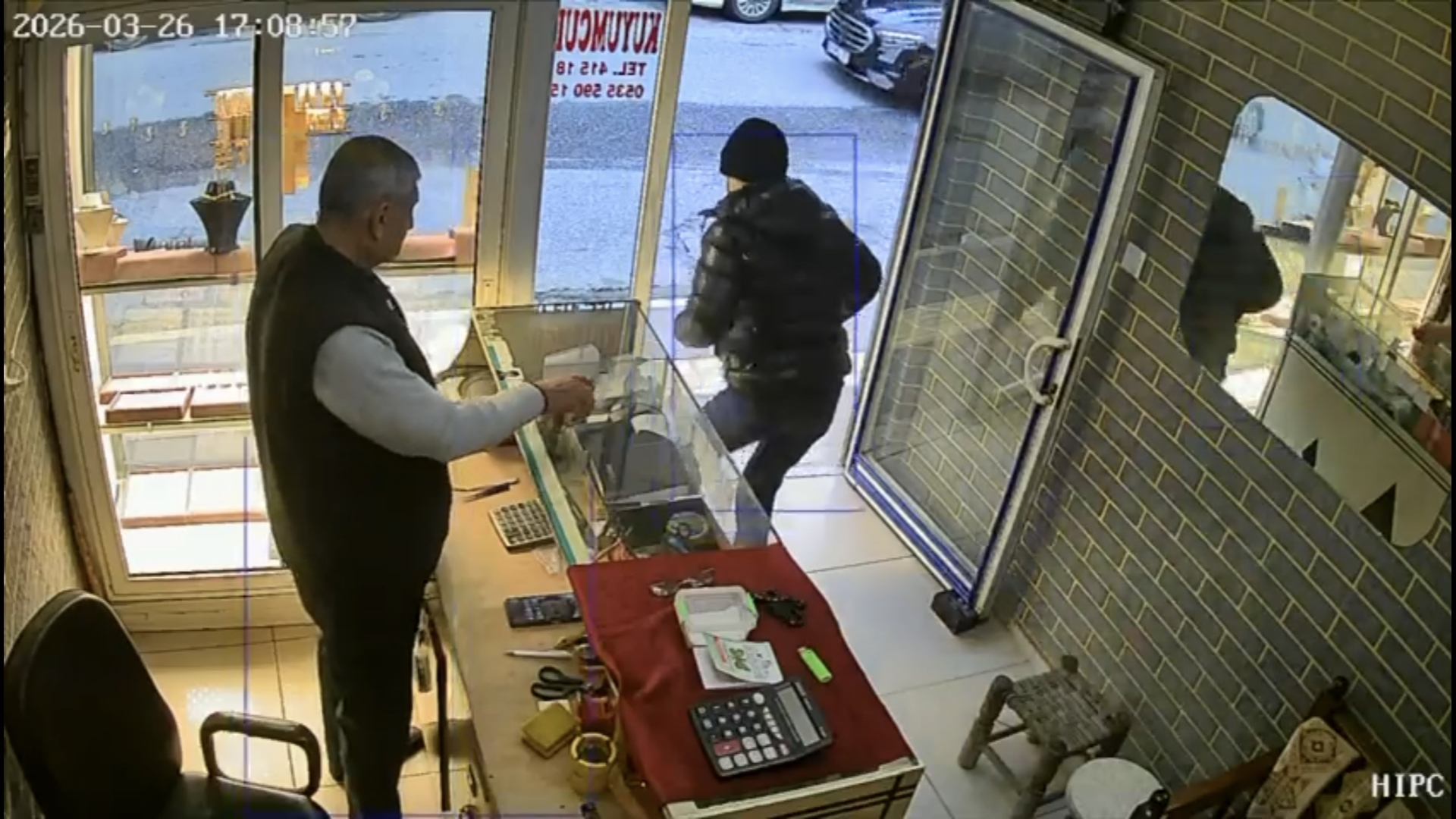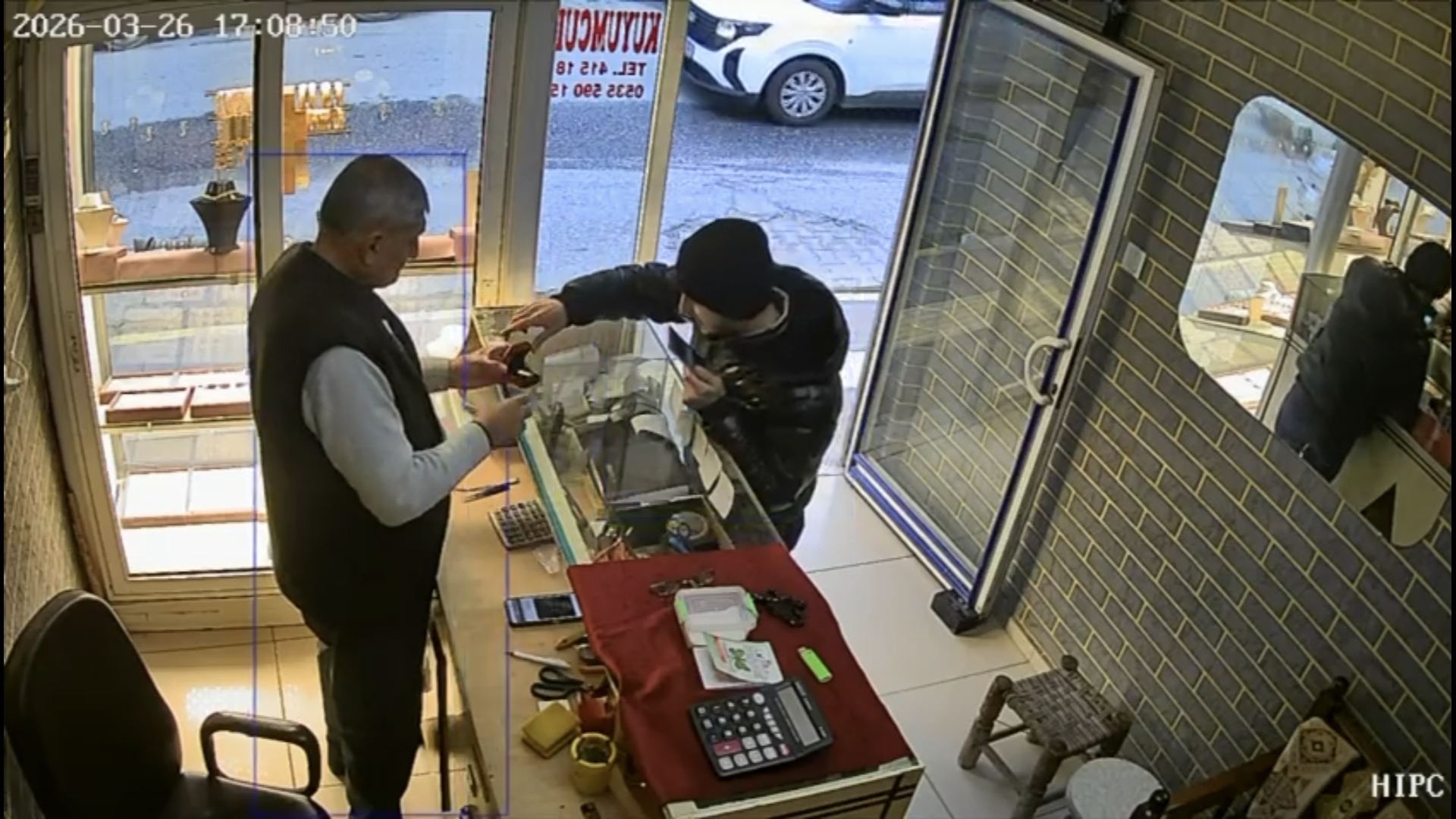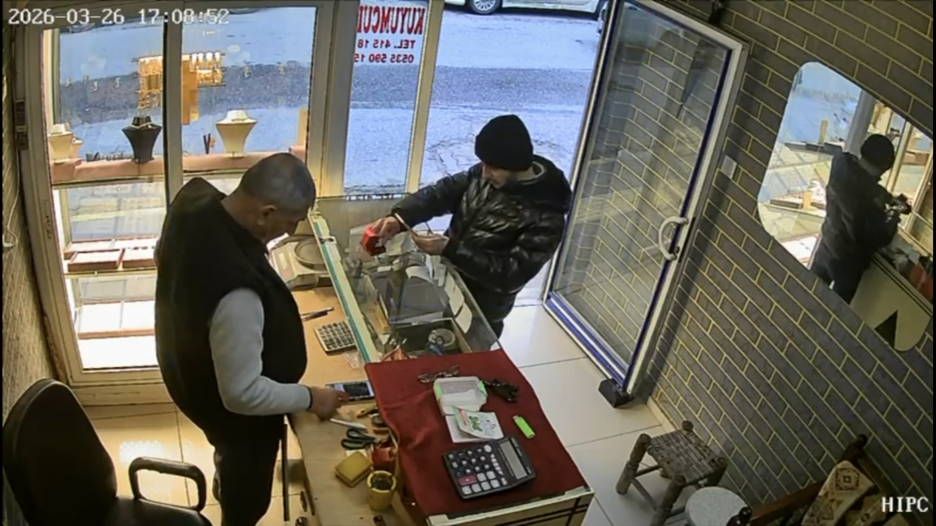 Güvenlik kamerası görüntülerinde, şüphelinin iş yerinde bir süre inceleme yaptığı, daha sonra vitrindeki yüzüğü kutuya koydurduğu ve fotoğraf çekme bahanesiyle alarak kaçtığı görülüyor. Görüntülerde ayrıca iş yeri sahibinin şüphelinin peşinden çıkarak yönünü belirlemeye çalıştığı da yer aldı.