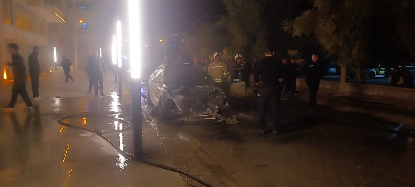 Olay, saat 23.00 sıralarında 8 Mart Mahallesi Palmiye 2 Sitesi yakınlarında meydana geldi. 06 FS 8807 plakalı otomobil, park halindeyken bir anda alev aldı.